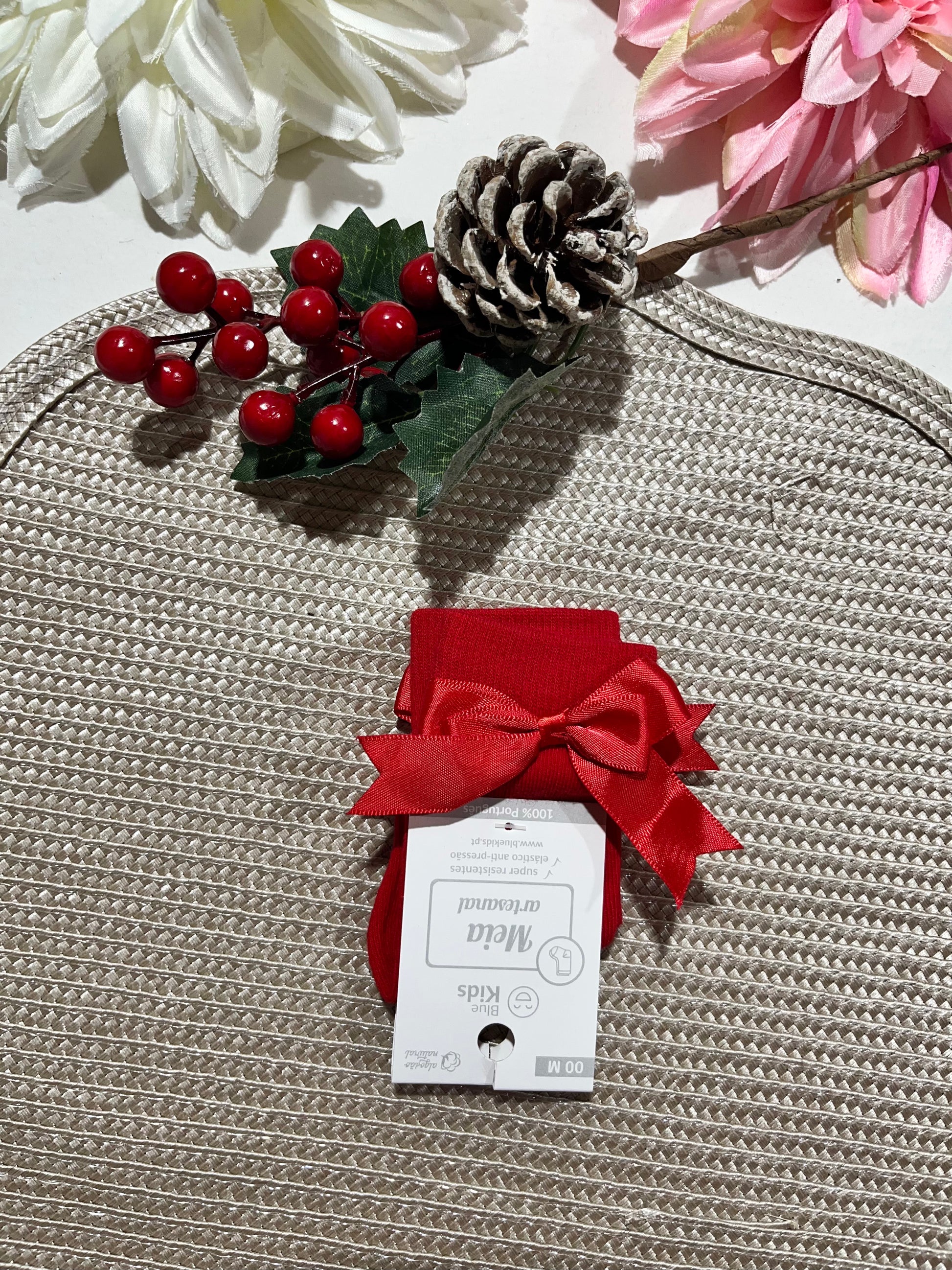 Meias até o joelho com laço para bebé - 1 aos 12M - Algodão natural