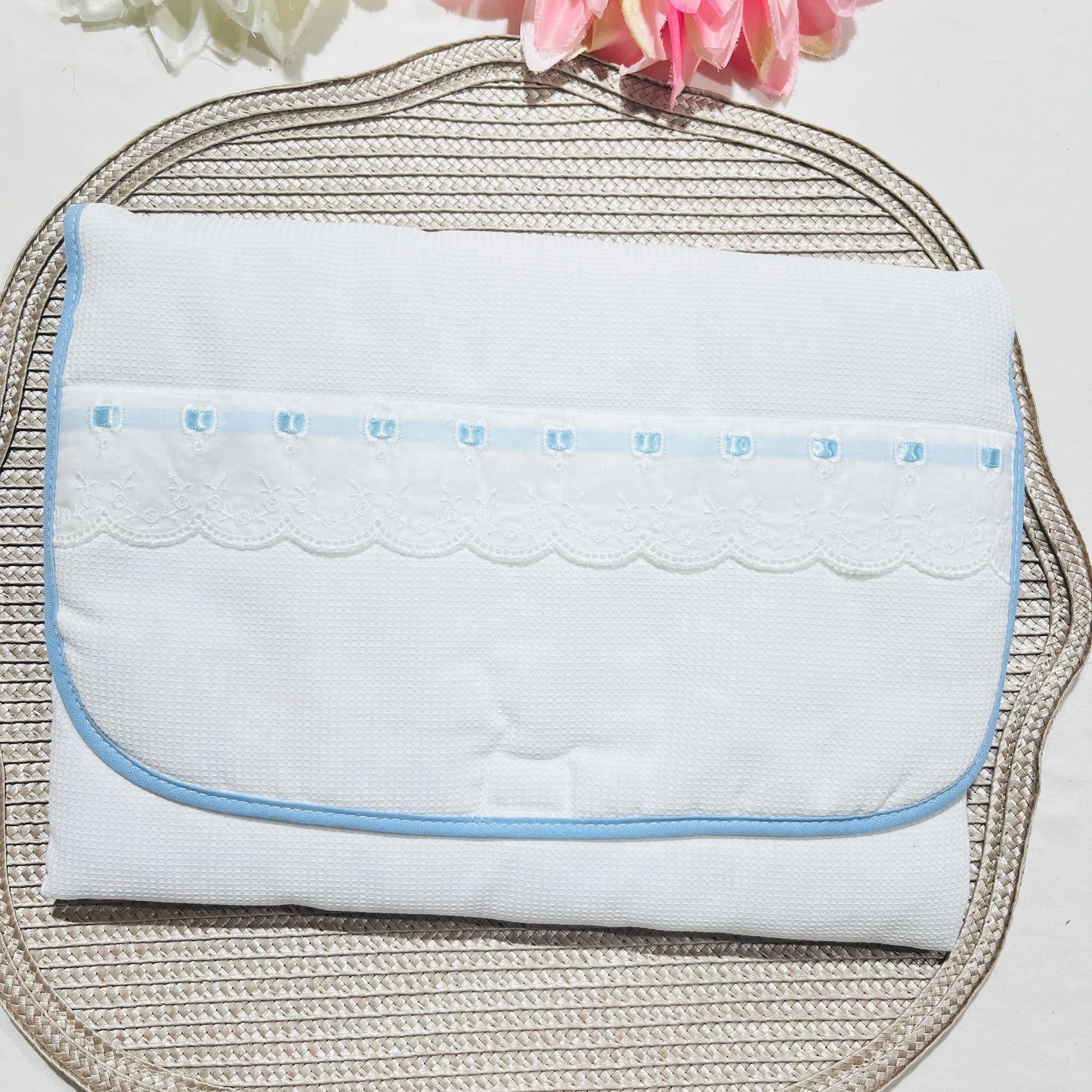 Cor: Branco com detalhes em azul bebé