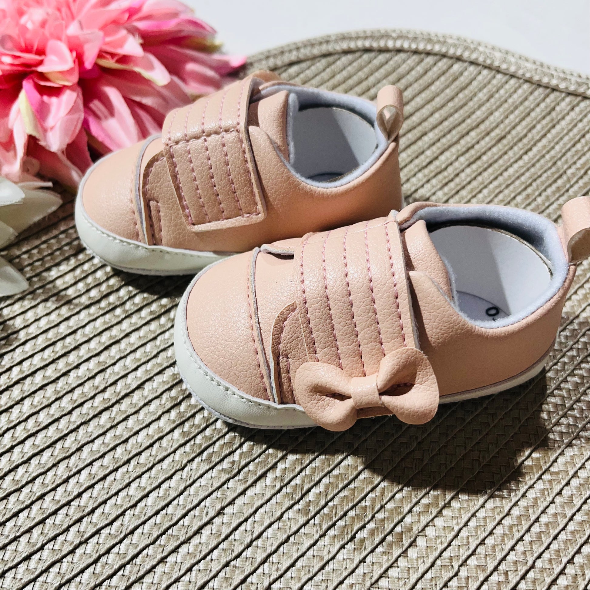 Sapatilhas de bebé muito bonitas que deixa o look da sua bebé ainda mais bonito.