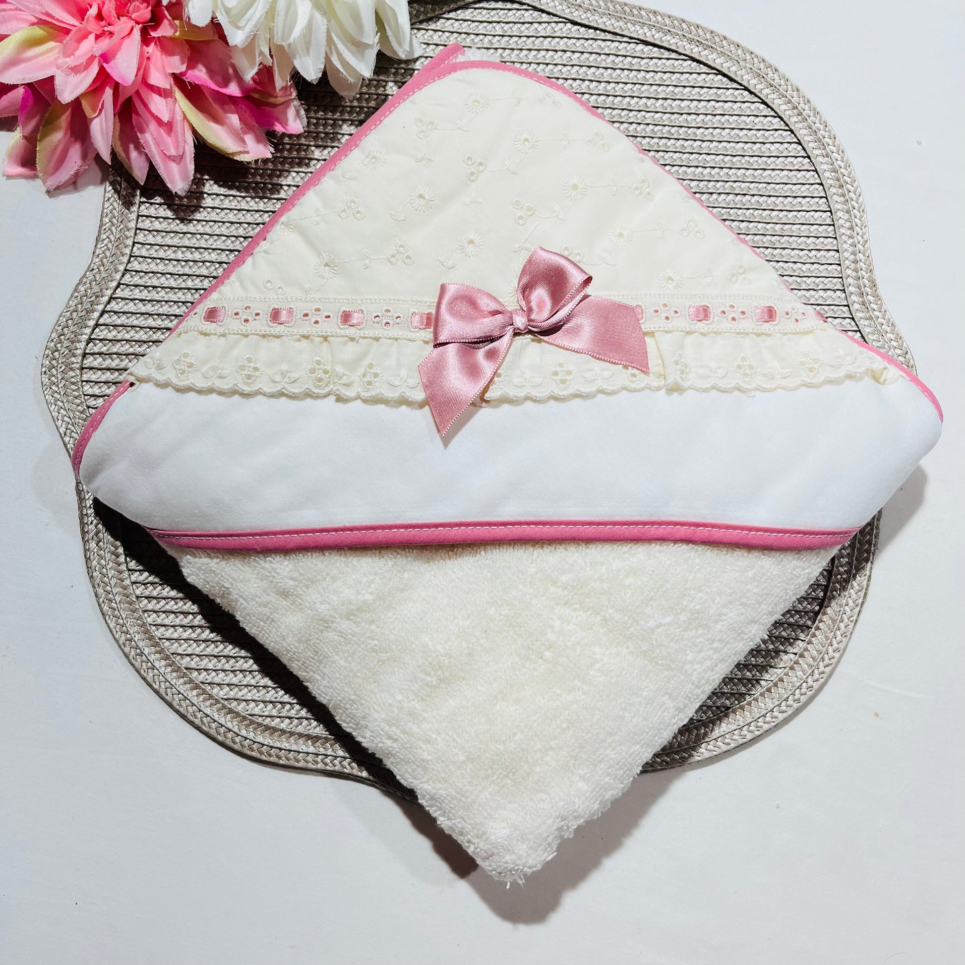 Toalha de Banho em algodão para Bebé com bordado inglês -Rosa velho