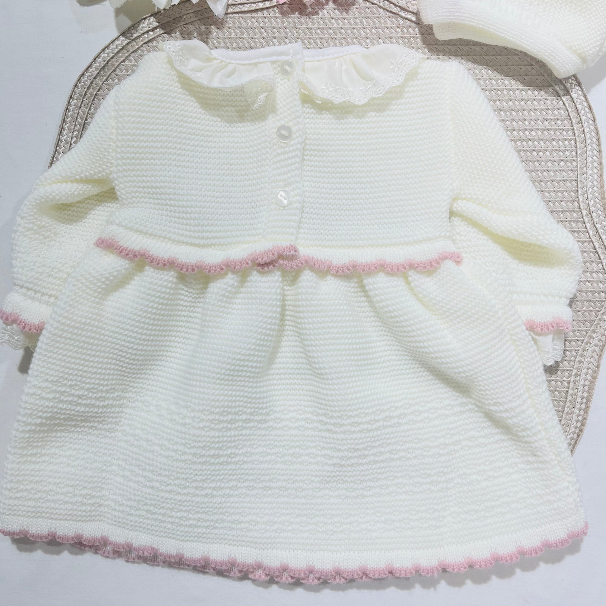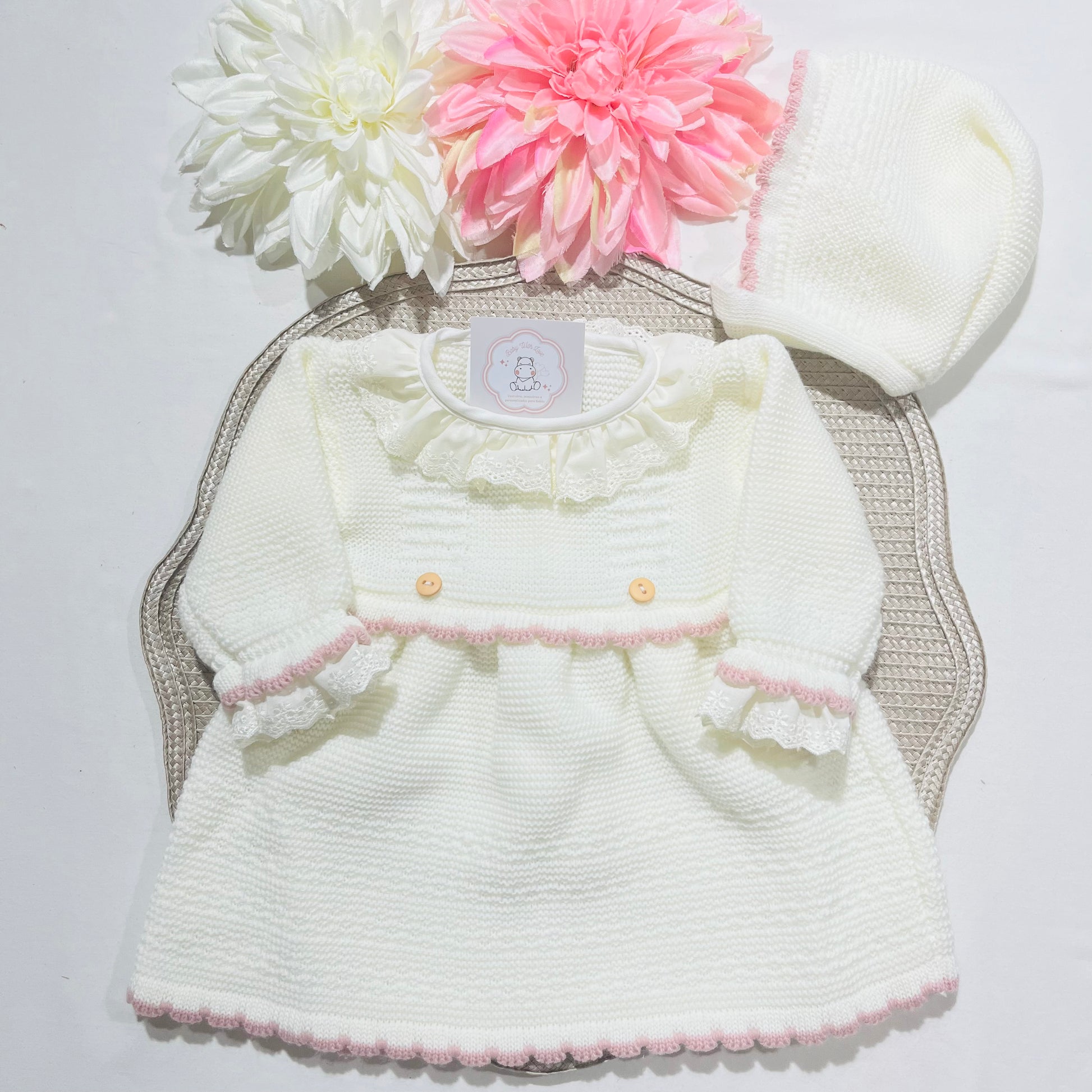 Lindo conjunto de vestido e touca em malha suave e confortável